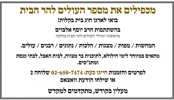 - מאמר חדש של הרב ברנד: עליה להר הבית רק בטהרה