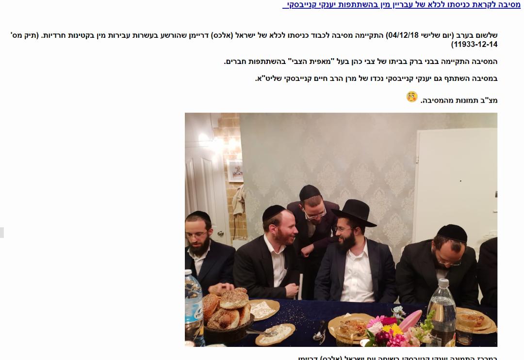 (This was reported on the website Rotter.net, along with the photos, but the article has now disappeared. Jewish Community Watch spoke to one of the people present at the party, who clearly stated that it was an event in his honor.)